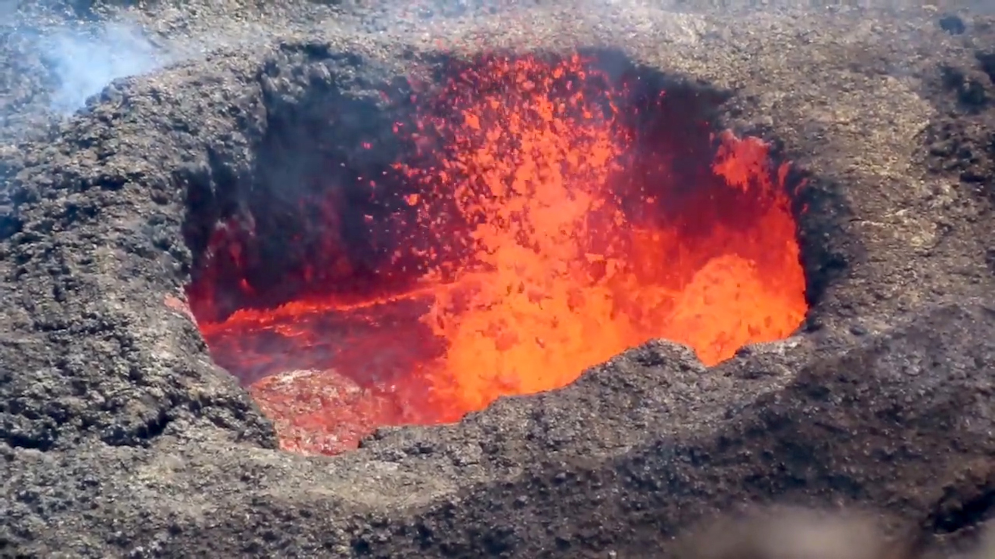 Hawaii’s Kīlauea volcano has been erupting since Sept. 29, and the latest video from the U.S. Geological Survey shows lava sloshing in the crater, still roiling and spilling over the edge nearly two months later.