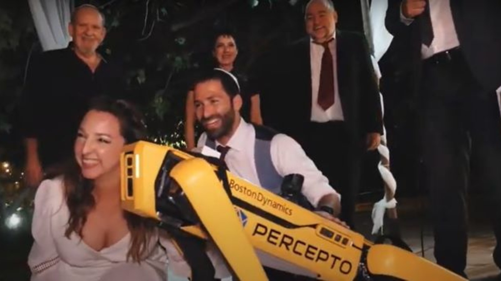 When Mishela Rabkin and Tal Levin were joined in matrimony under a traditional chuppah (canopy), they had quite a nontraditional surprise: A Spot robot trotted down the aisle bearing their wedding rings.