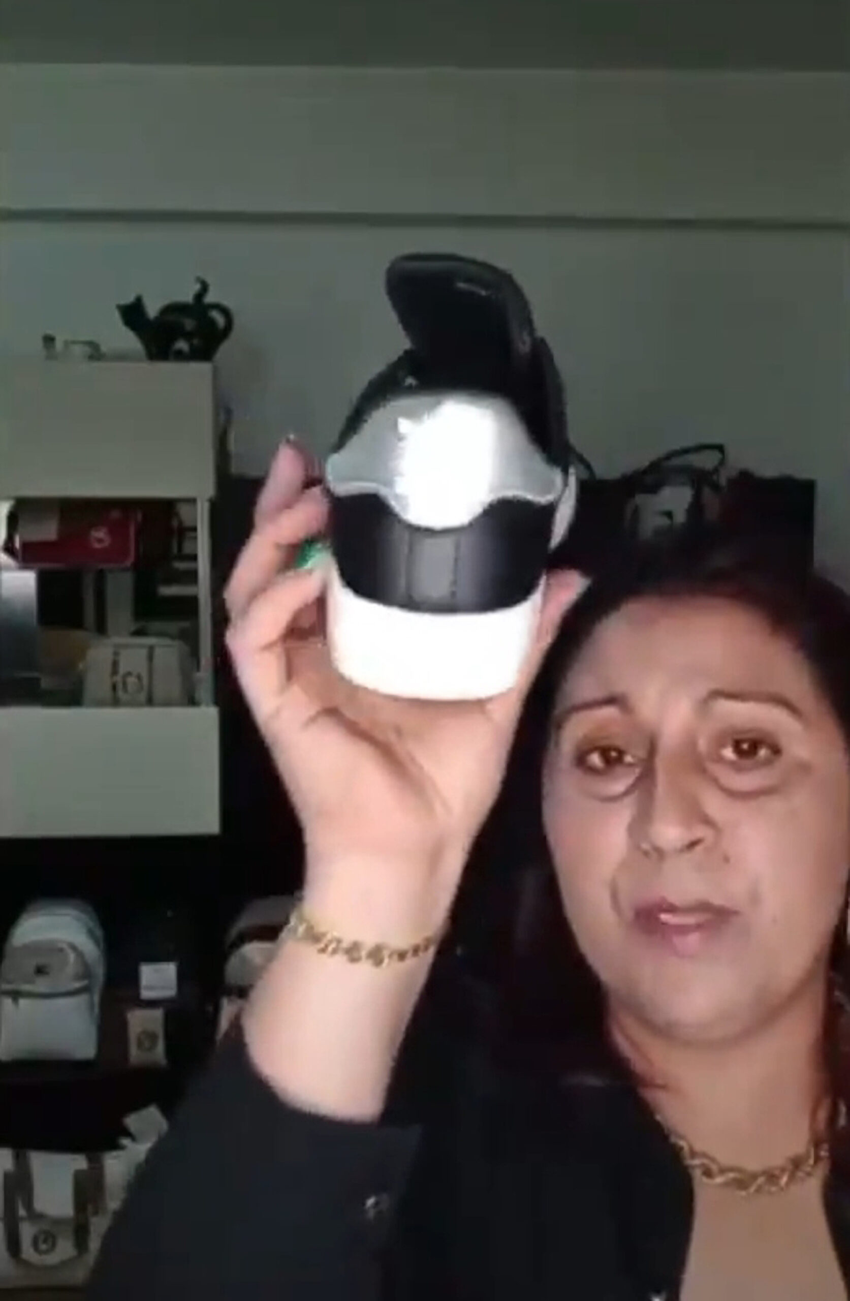 In the footage, the female suspect is seen hawking a pair of trainers with the Adidas logo during the Facebook Live session.