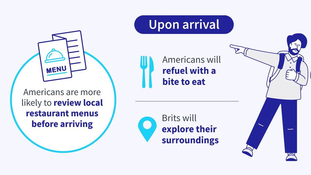 When finally reaching their vacation destination, they will explore their surroundings, while Americans will look to refuel with a bite to eat after their long journey.