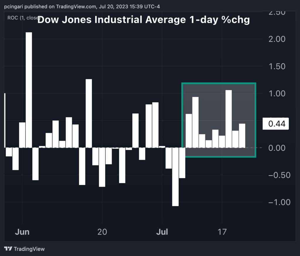Chart 1: Dow Jones Marks 9 Consecutive Green Sessions