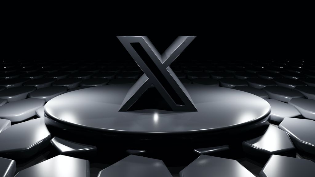 Meta’s ‘X’ logo features two opposing angles assembled into the shape of an X, with white and light blue symbols overlaid on a blue background.