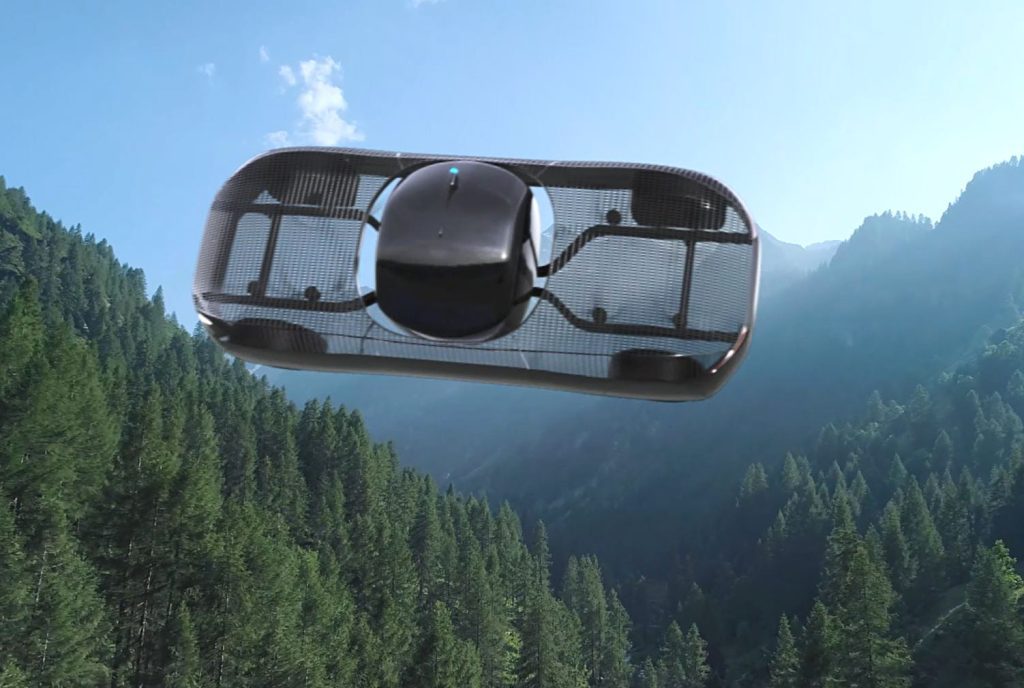 After taking off vertically, it can fly above obstacles “until a desired destination is reached”. The driver and the cabin are stabilized by a unique gimbaled rotating cabin design.
