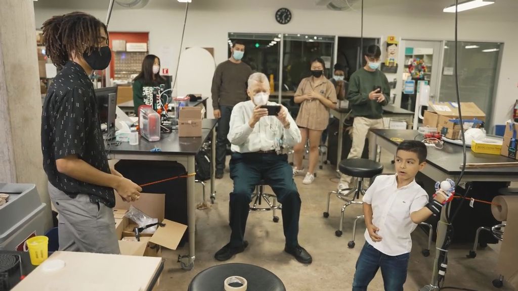 The Rice e-Nable team met repeatedly with Adriel and adjusted the design of the arm until it was comfortable and effective, enabling him to pick up such objects.