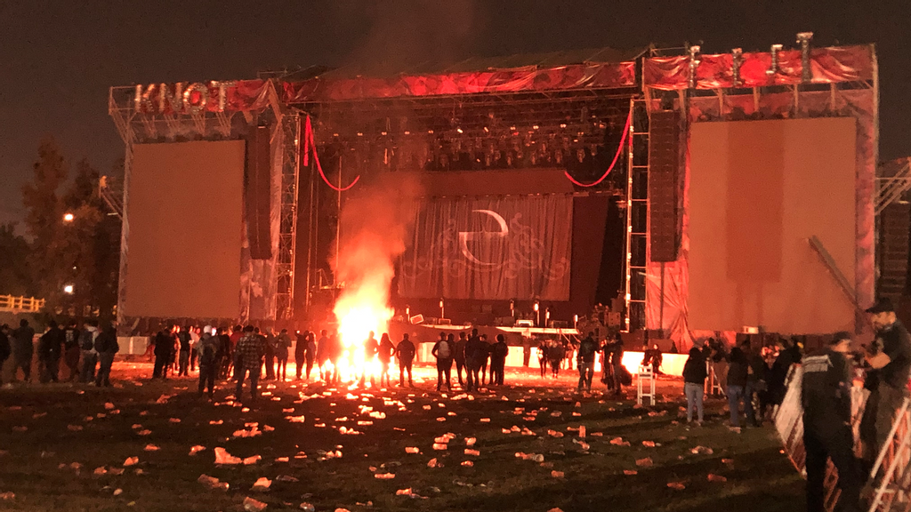 At the 2019 Knotfest, in Mexico City, angry fans created chaos, performances were canceled and instruments and production equipment were set on fire. (Julio Guzmán/Zenger)