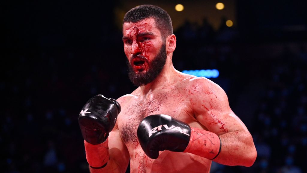 The Russian-born Beterbiev trailed on two of the three judges’ cards and struggled to see through the mask of crimson while bleeding profusely from a gash in the middle of his forehead caused by a third-round clash of heads that also cut Browne over his right eye.