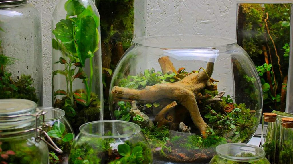A creative British man is wowing fans with these sealed worlds where plants and animals live in harmony in a closed glass container.