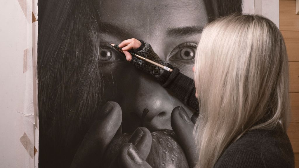 In one video, she shows the process of creating her self-portrait which took 97 hours to complete.