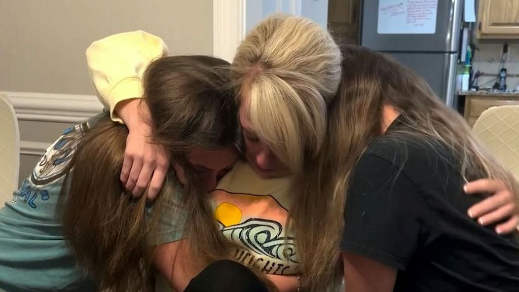 Upon reading the message, Becky is overwhelmed with emotion as she pulls the twins in for a warm embrace.