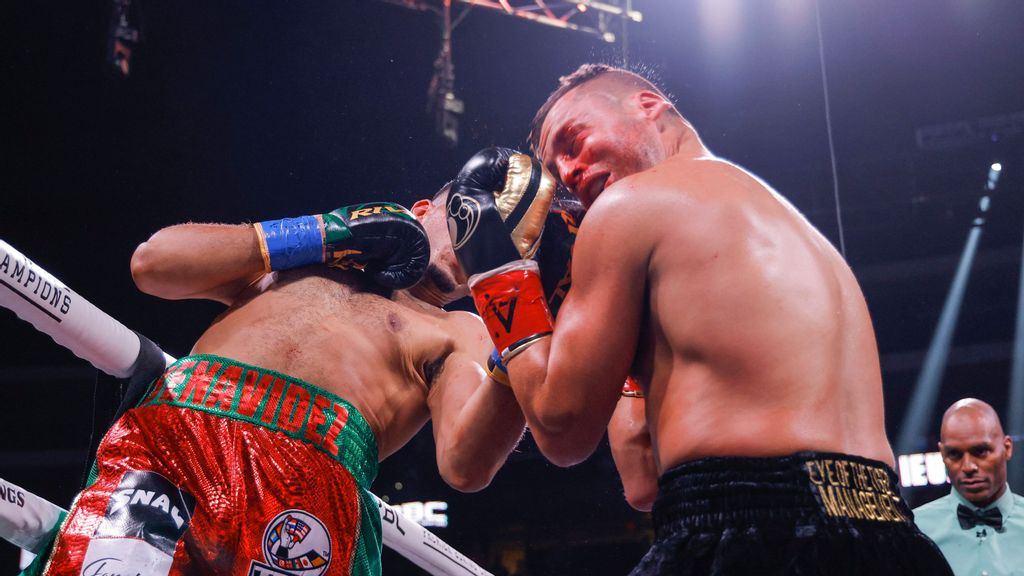 The Canadian fought on, forcing Benavidez backward despite bleeding from a cut over his right eye with a minute remaining in the second round.