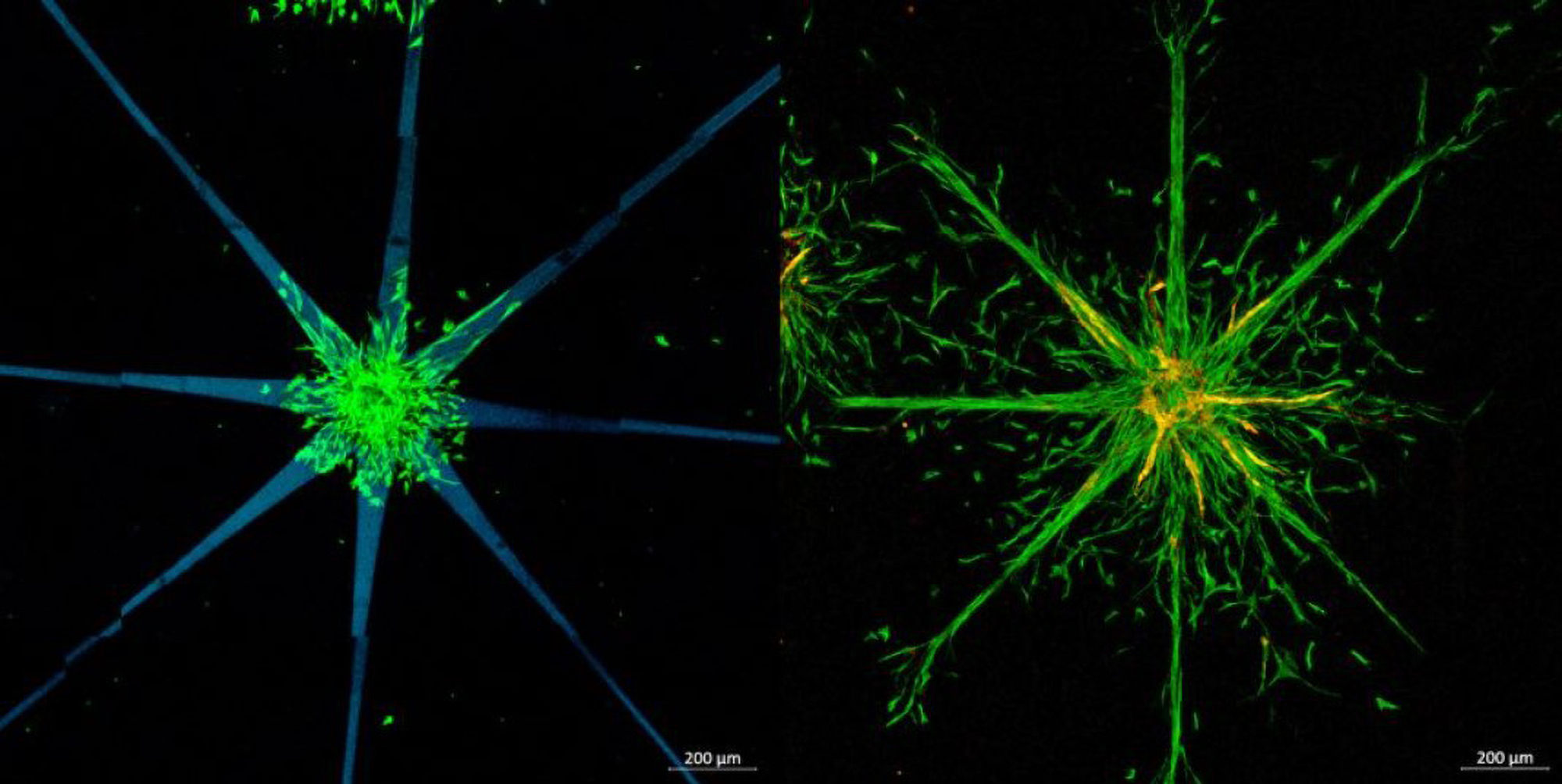 That way, the laser beam was used to predetermine certain paths in the hydrogel – and indeed the cells migrated exactly along exactly these paths. In this way, star-shaped or lattice-shaped cell structures could be produced.