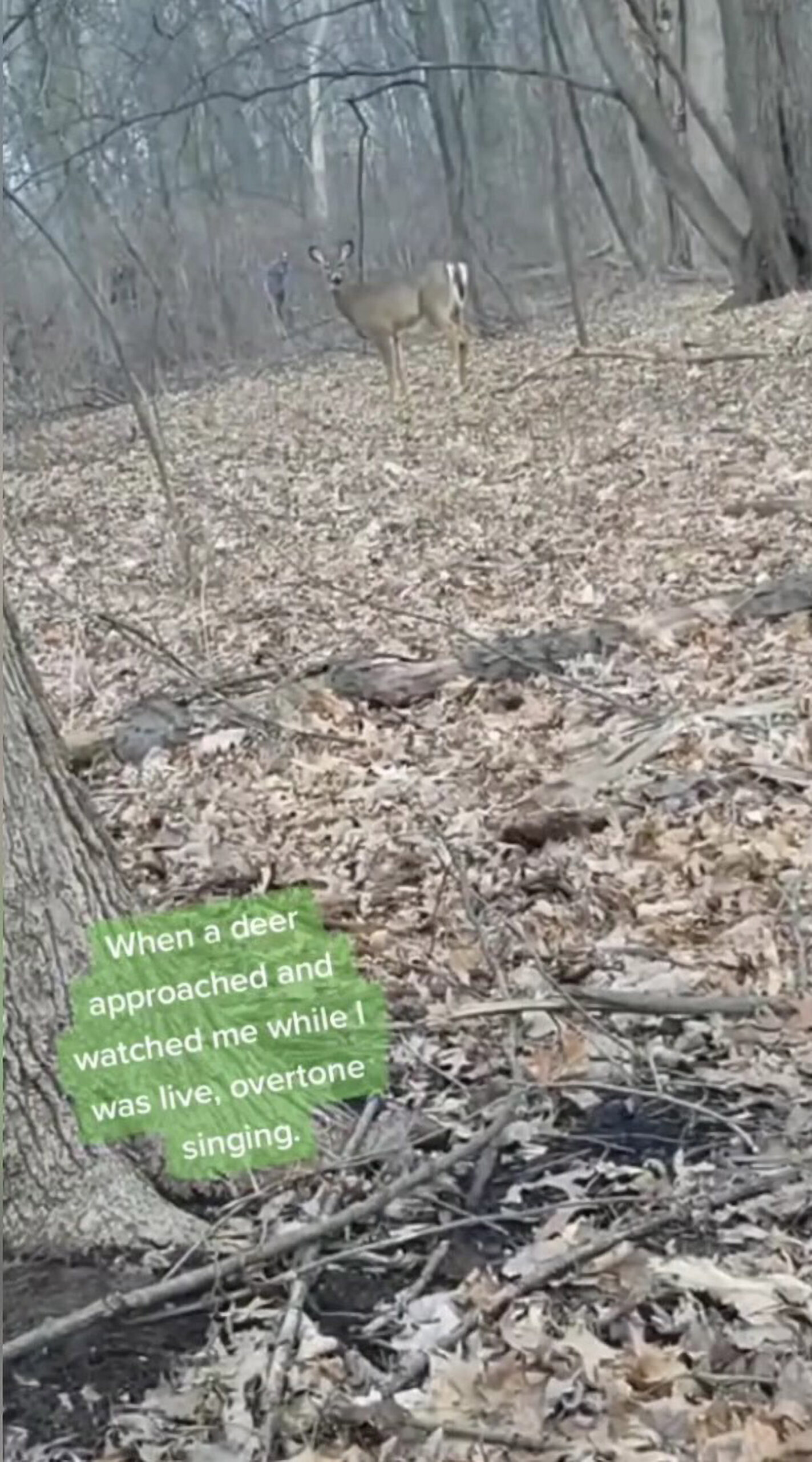 The TikToker, whose bio reads – ‘Not the king of throat singing, just a king who happens to throat sing- accompanied the footage with the caption: “When a deer approached and watched me while I was live, overtone singing.”